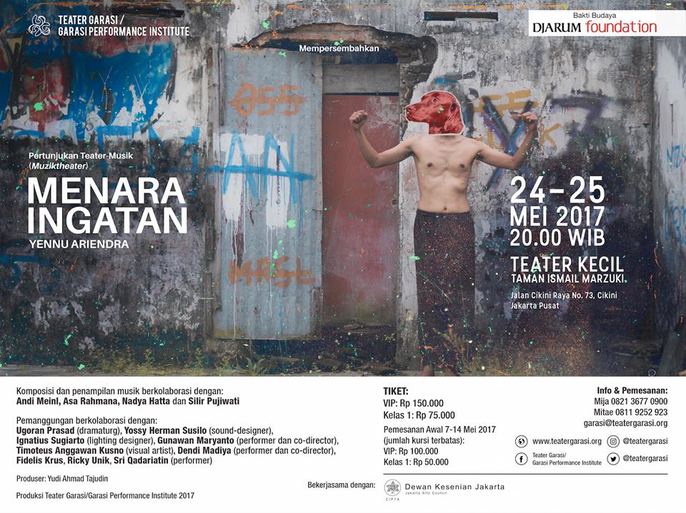 Terima kasih untuk rekan-rekan media yang telah hadir dan menuliskan amatan atas pertunjukan “Menara Ingatan”, produksi Teater Garasi/Garasi Performance Institute, berdasarkan karya komposisi Yennu Ariendra, yang telah dipentaskan di Teater Kecil – Jakarta pada tanggal 24-25 Mei 2017 lalu.