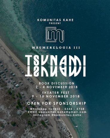 Pada Desember 2017 yang lalu, Komunitas KAHE bekerjasama dengan Teater Garasi/Garasi Performance Institute, mengadakan sebuah kegiatan bertajuk M 7.8 SR: Pameran, Diskusi, dan Pertunjukan (Refleksi Tsunami di Maumere dalam Memori, Perubahan, dan Ancaman). Dalam program ini, Komunitas KAHE mengangkat peristiwa tsunami Flores dan Maumere khususnya sebagai titik pijak refleksi dan eksplorasi kesenian. Tema ini dipilih, didasari oleh kegelisahan para seniman yang terlibat dalam M 7.8 SR (yang rata-rata hidup dalam generasi milenial), terhadap peristiwa tsunami yang kian dilupakan, sekaligus menjadikan refleksi tentang peristiwa tsunami tersebut sebagai teropong untuk melihat keadaan Flores, khususnya Maumere.